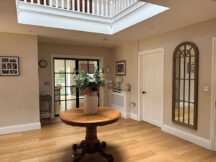 The front door leads to an impressive hallway and lobby, where the standout feature is without doubt the stunning two-storey lightwell that’s capped by a glass skylight. However, this central section of the retrofit also accommodates a boot room, larder, plant room, storeroom, a toilet and a utility room.