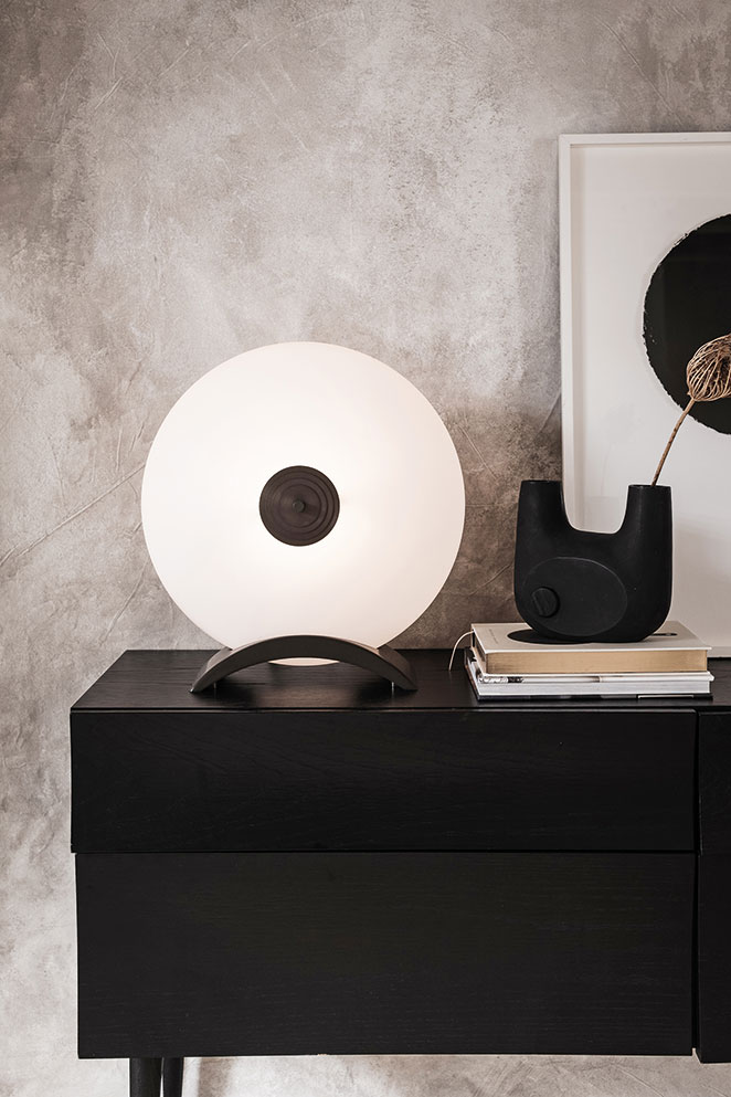 5. Featuring mouth-blown, sandblasted opal glass shade, chosen for its porcelain-like texture and soft ethereal glow, the Nova Table Light from J. Adams & Co appears to be pierced through its core by a lustrous bronze stepped finial. Balanced on a cast solid bronze plinth, the sleek arched base subtly mirrors the curved form of the glass shade. Price: £1026