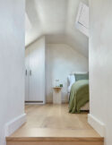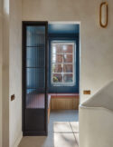 Adjacent to the sitting room, a guest room offers a bright retreat with its own ensuite bathroom, while at the front of the house a bold boot room – painted deep blue – provides a striking contrast to the soft, natural colour palette used elsewhere.