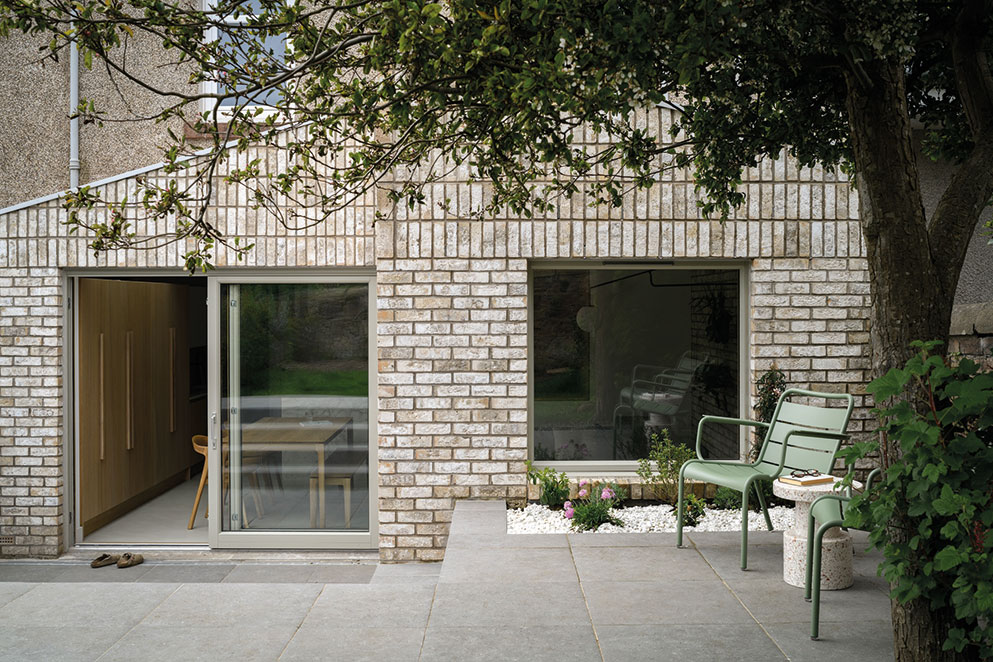 A buff toned Marziale brick was chosen for the interior wall in the snug area and part of the dining space and this complements both the red brick boundary wall and the beige pebbledash.