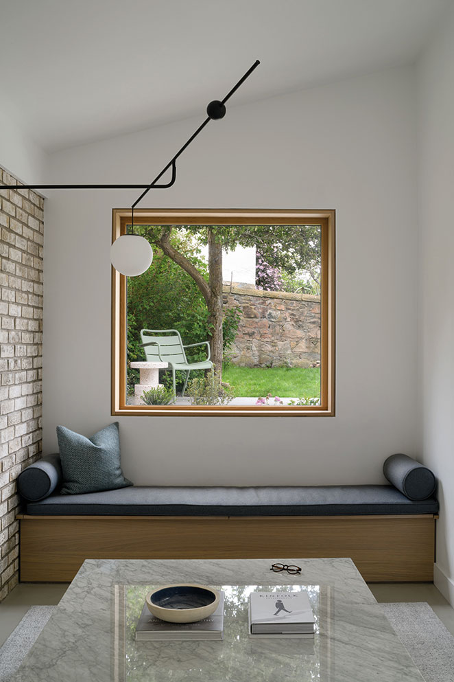 The plans from Pend also included the removal of the offshoot extension in the middle of the patio, thus establishing a new connection with the garden accessed by floor to ceiling sliding doors leading to a sunken patio, raised flower bed and varied ground levels to the end of the site. “The offshoot extension interrupted the connection with the garden and as the site is on an elevated position on Corstorphine Hill, surrounded by greenery and views, I wanted to make the most of the blue skies when they’re available!”