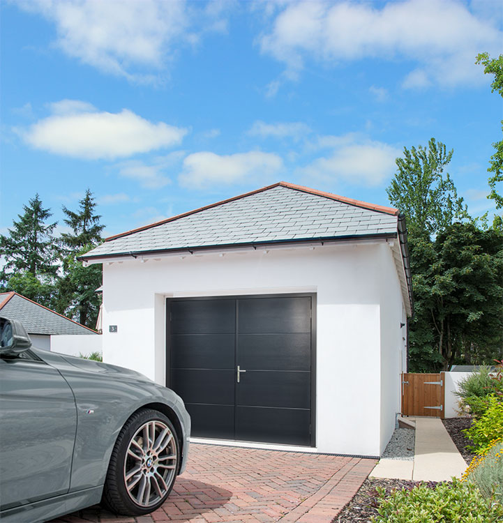 These new doors offer a perfect solution for homes requiring all the advantages of a modern side hinged garage door with the added benefits of a lightweight, impact resistant and low maintenance material that looks stunning on any design.