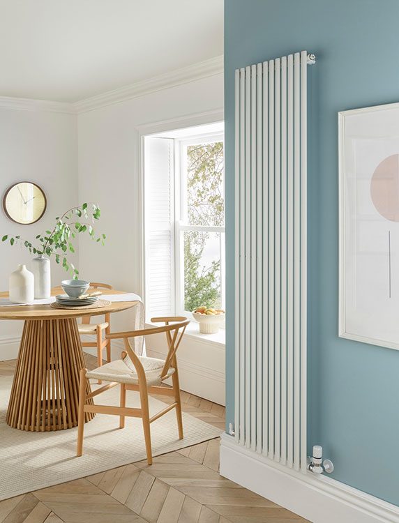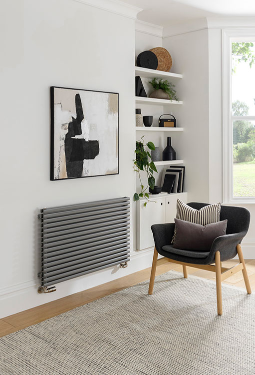 Distinctly smaller than the original 50mm model, the 30mm Ellipsis offers much smaller tubes for a sleek unobtrusive design without compromising on performance, making it ideal where space is tight or limited such as narrow hallways. For awkwardly shaped rooms or for those with limited wall space, the Ellipsis vertical model works great. For higher heat outputs in larger spaces, a double configuration – where there are two layers of tubes – will still take up less wall space whilst also providing more heat.